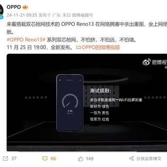 不过OPPO Reno13将搭载的双芯抢网技术,或许可以帮我们直接解决网络慢的问题,从OPPO官方给到的信息来看,他们这个技术能够实现在软硬件两个层面实现双芯抢网,还有国家无线电监测中心和腾达实验室双倍认证,在日常的体验中,应该能够给到一个不小的惊喜,要是对于手机的网络有比较高需求股票的交易平台,可以蹲一蹲这款即将在11月25日发布的新品。